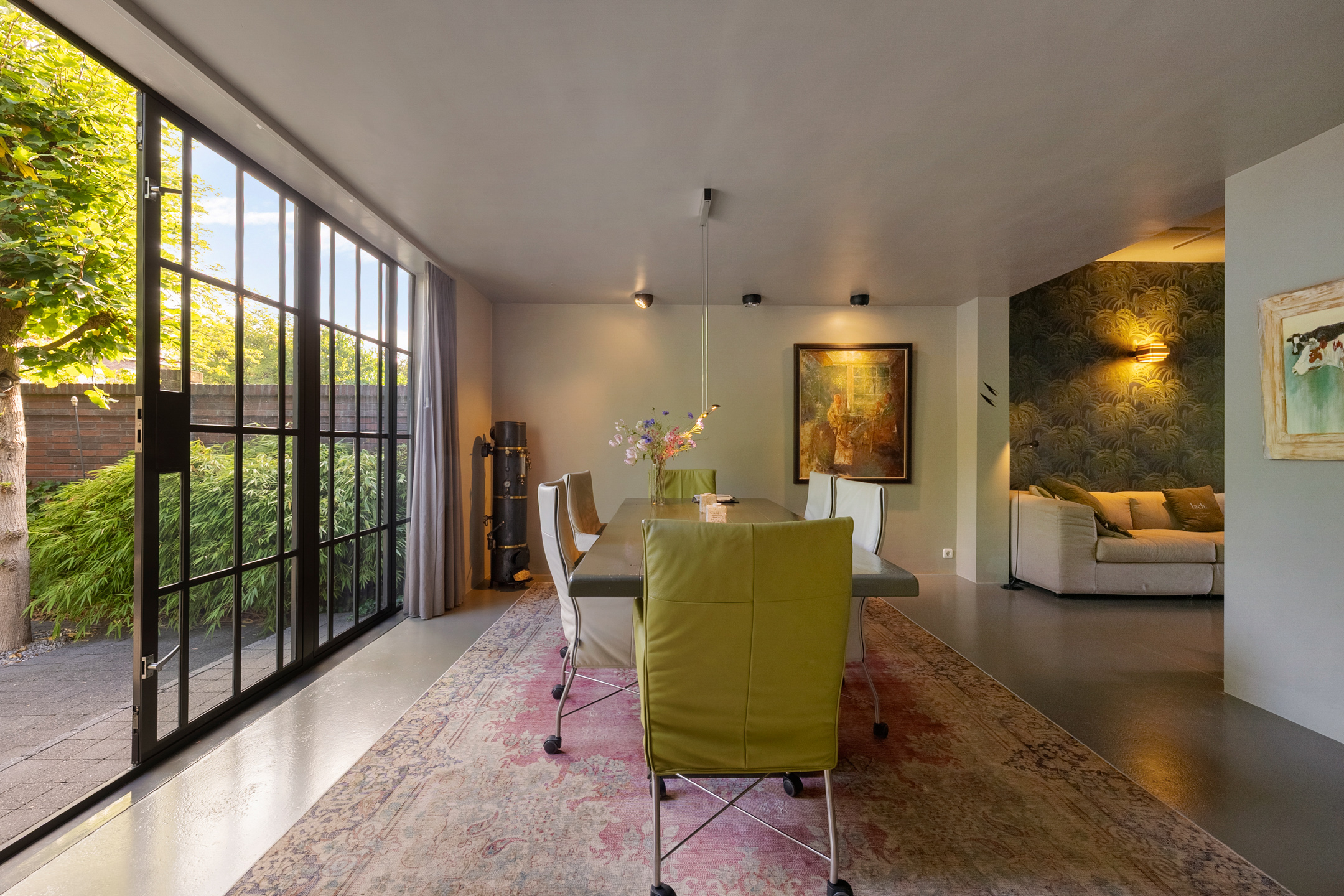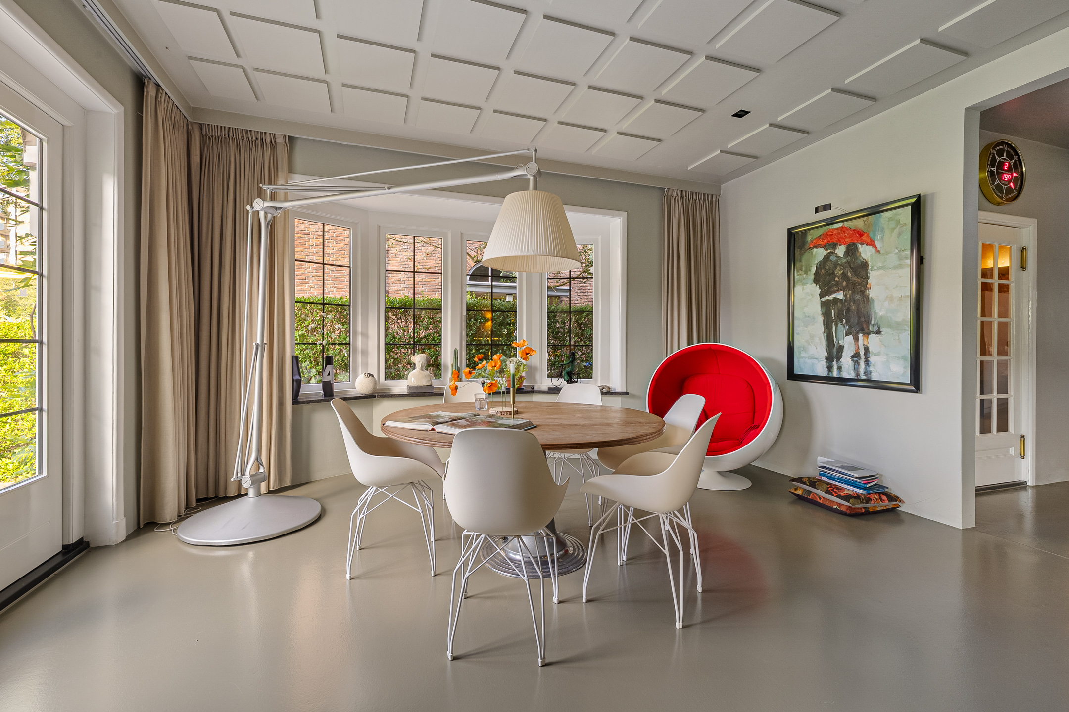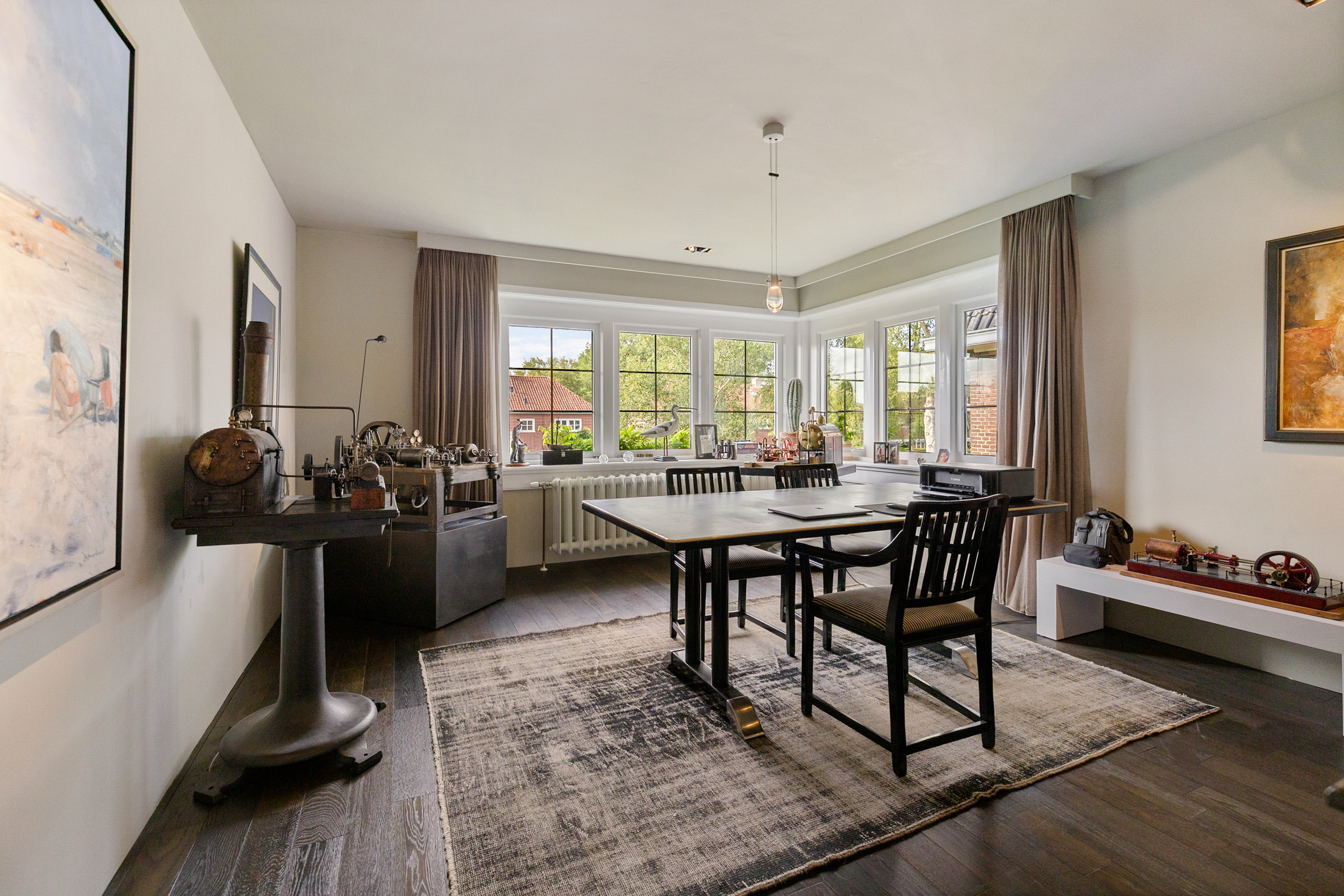 Het betreft een ruime (oppervlakte circa 269 m²) halfvrijstaande woning die uniek is door de combinatie van haar statige jaren-30 stijl, en het door een binnenhuis architect volledig gemoderniseerde interieur