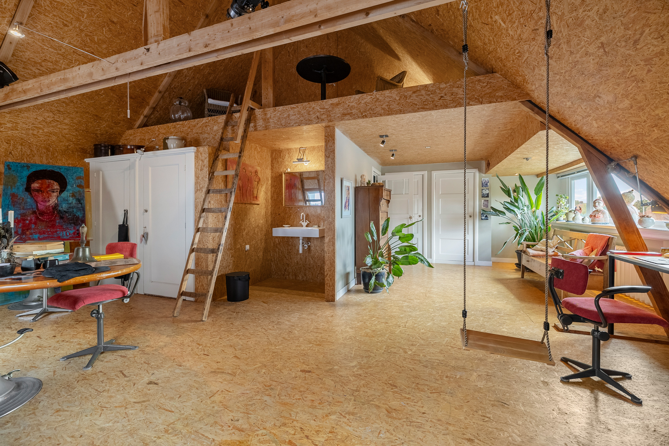 - slaap-/werk- en of hobbyruimte met een oppervlakte van circa 30 m² inclusief dakkapel, wastafel en vliering
