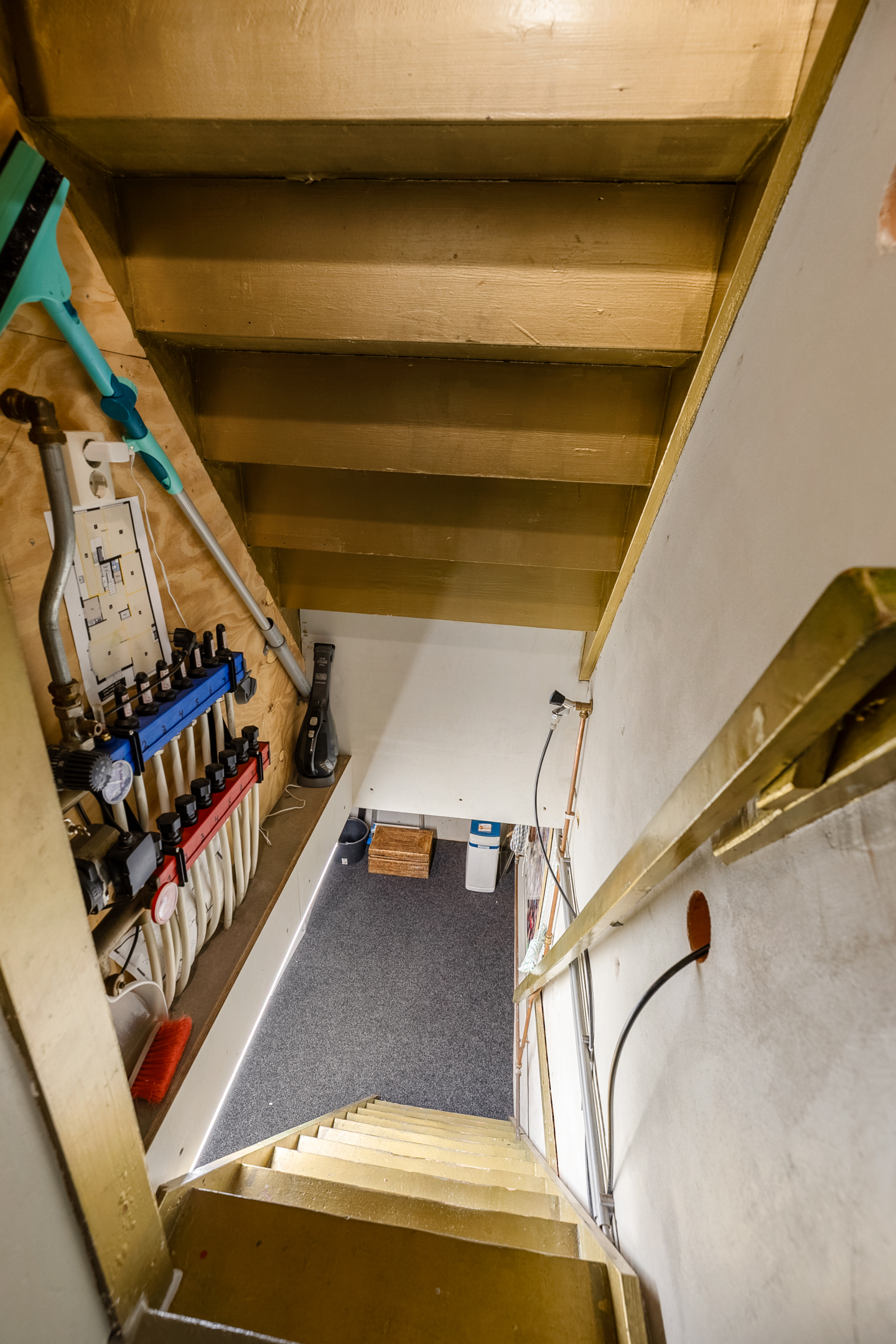 - de living is onderverdeeld in een woonkamer en een open keukenruimte met (droge) kelder